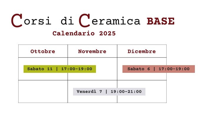 Il corso di ceramica base è un corso di gruppo strutturato in 5 lezioni.